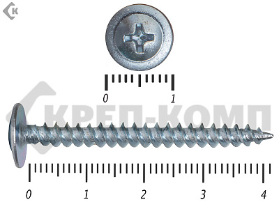 Данные саморезы имеют плоскую шляпку с шлицом под насадку Ph2. Они делятся на две основные группы: